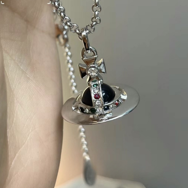 Lleva contigo la elegancia y la innovación de Vivienne Westwood con cada paso, uniendo el mundo de la moda con el misterio del universo en este collar que trasciende lo convencional.