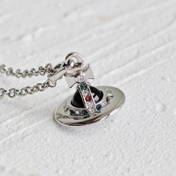 Collar Vivienne Westwood de Saturno en 3D con Piedras de Zircón Multicolores - Un Universo de Elegancia