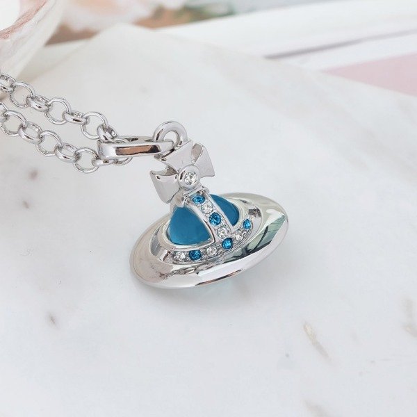 Lleva contigo la elegancia y la innovación de Vivienne Westwood con cada paso, uniendo el mundo de la moda con el misterio del universo en este collar que trasciende lo convencional.