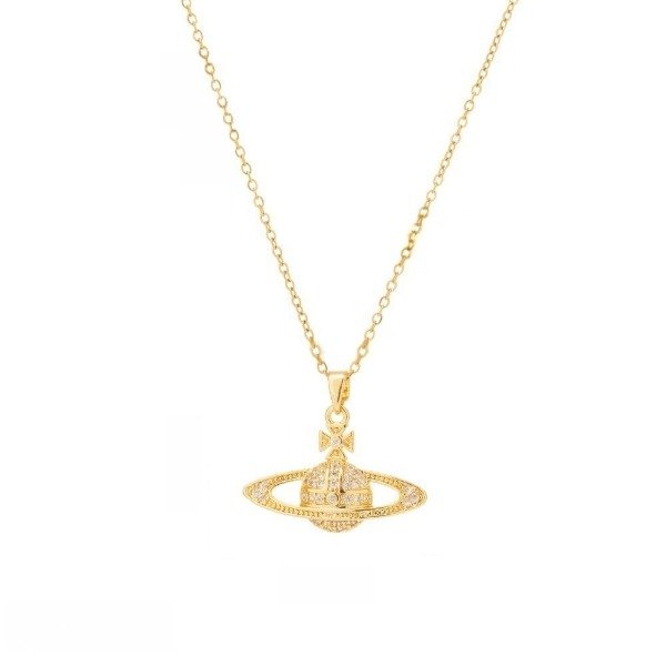 Este collar de Vivienne Westwood no es solo una joya, es una declaración de moda que captura la esencia del diseño innovador y la elegancia atemporal. Lleva contigo la belleza de Saturno con este exclusivo collar que refleja tu estilo y personalidad distintiva.