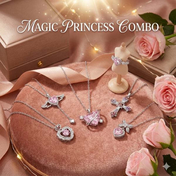 Viví tu era de princesa moderna con el Combo Magic Princess: un mix de collares finos, corazones brillantes y detalles encantados que hacen que cualquier look se vea más dulce, elegante y mágico.